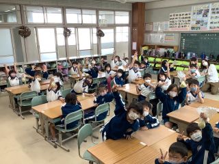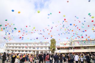 1日(土)に「ふれあい祭り」が開かれました。地域の方や保護者、学習でお世話になった方々などに各クラスの出し物を見ていただきました。また、親子下校の前に、創立150周年記念行事の一つとして、グラウンドで「バルーンリリース」を行いました。青空に向かって一斉に飛び立つ色とりどりの風船に、大きな歓声が上がりました。