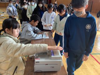 12月12日(金)2時間目に、2年生が音楽宅配事業を行いました。ピアノとサクソフォンの音色を聞き、思い思いの情景を想像しました。子どもたちは、音楽の授業で習ったことを生かして、意見を発表することができました。また3時間目には、6年生が選挙出前トークを行いました。18歳になったときに選挙に行くことができるように、選挙の仕組みや投票の仕方を学びました。