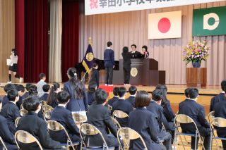 6年生の皆さん、ご卒業おめでとうございます。真剣な表情、気持ちの込もった返事や歌声、お別れのことばから、6年間の思いが伝わってきました。4月からの中学校生活も応援しています。